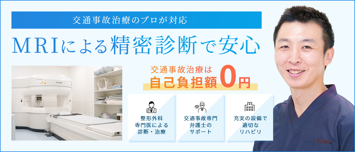 交通事故は誰にでも起こり得る出来事です。これまで何も症状がなかった健康な方でも交通事故後、慢性的な痛みに悩まされることが多々あります。交通事故後は痛みを慢性化させないよう早期に適切な診断と治療を行うことが大切です。意外に知られていないことに驚きましたが、整形外科クリニックで交通事故治療を受けられないと思っている患者さんが多いようです。当院は交通事故に遭われた方の治療をしております。交通事故に遭われた方々が後遺症を残すことなく、適切な治療が受けられるよう、当院は精一杯サポートします。