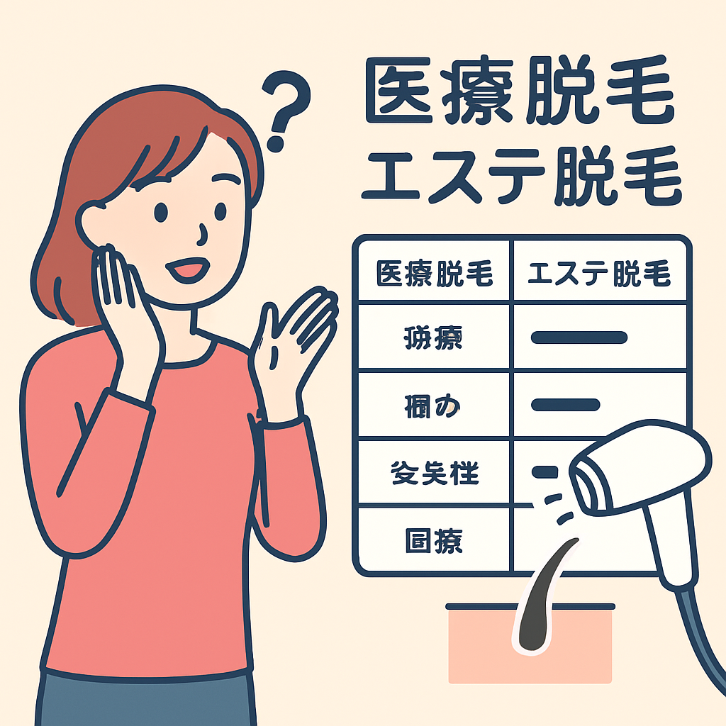 医療脱毛とエステ脱毛の違いを徹底解説|効果・痛み・安全性・回数・費用を比較!
